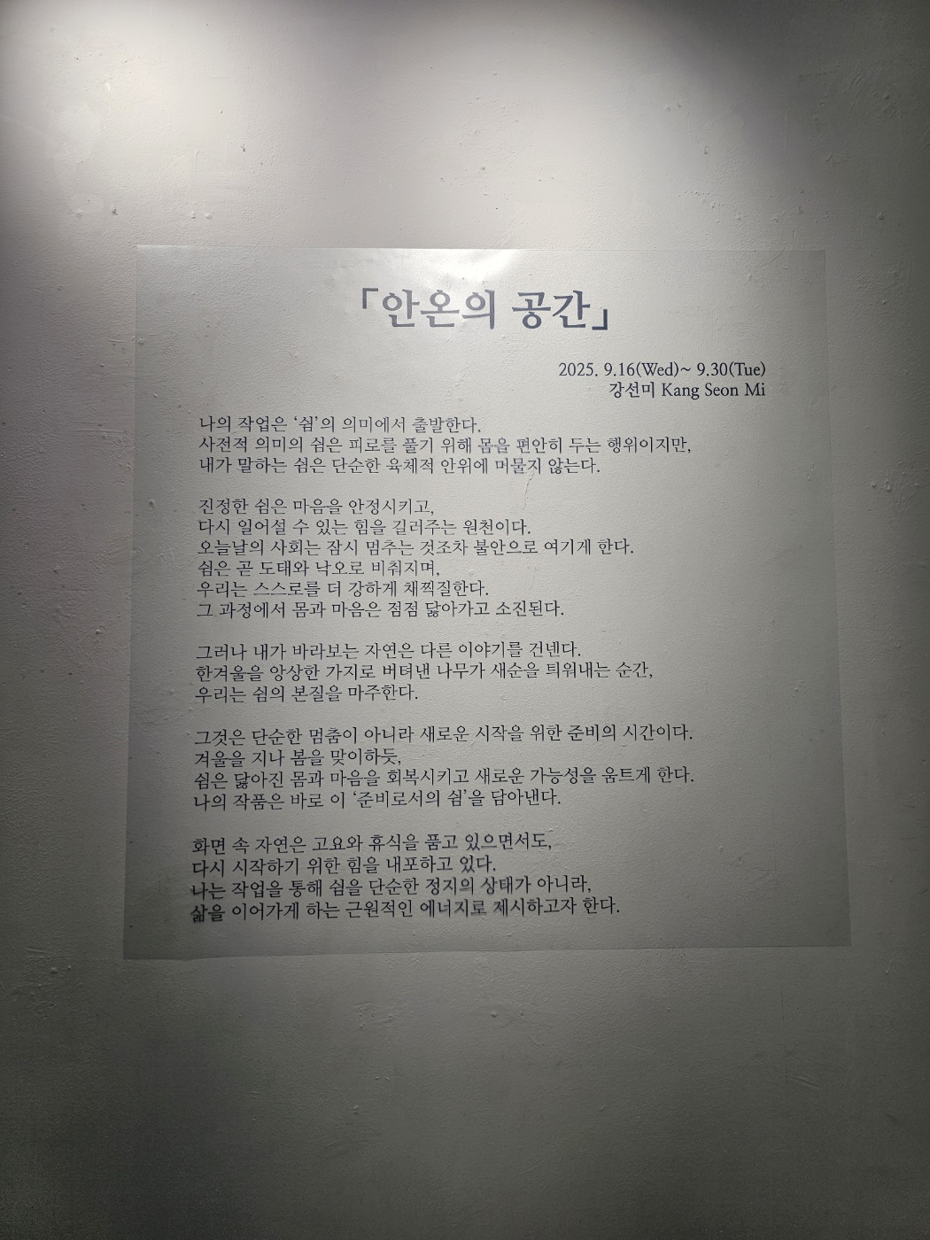 2025.9.16(Tue)~9.30(Tue) 강선미 개인전 전시전경「안온의 공간」